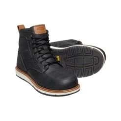Moisture-wicking textile lining is in place to make sure your feet remain comfortable and dry all day. Removable, dual-density PolyAer PU footbeds with aerated pillow-top cushioning will support your feet as well. The waterproof leather boots have shellback heel supports and KEEN Luftcell air-infused PU midsoles for weightless comfort. The midsoles meet the ASTM D471-06 903# oil and isooctane chemical resistance standards for enhanced durability.