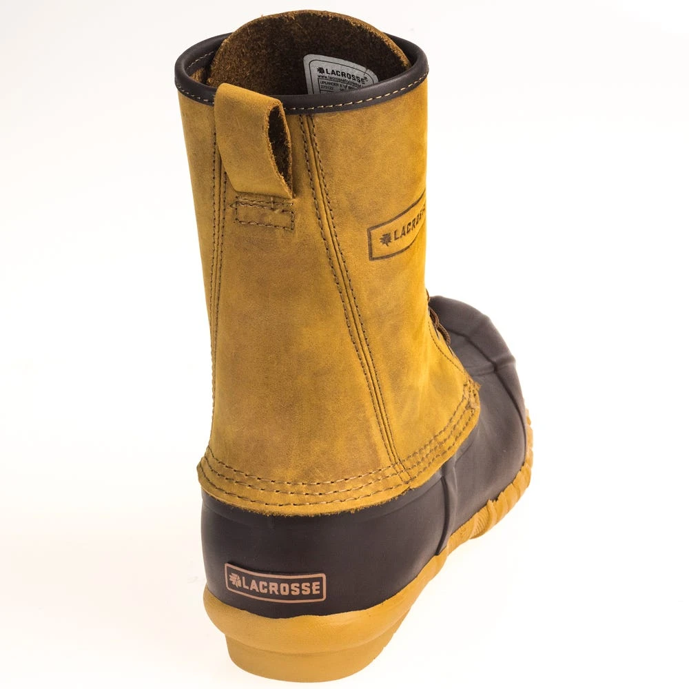 Designed originally with late-season bird hunting in mind, these popular winter boots have proven the perfect choice for all kinds of wet weather winter mud, muck, and slush. The rugged uppers on these men’s rubber bottomed boots are distressed, oiled, full-grain leather for ten inches of water-resistant ankle support and protection for you all winter long. The benefit to full-grain leather is that the natural ability of this durable and supple leather actually grows stronger over time, developing a natural sheen and self-protecting outer layer as the leather ages. This means your men’s leather boots are actually stronger after the first few years, not to mention the supple leather will also have formed a custom fit around your ankle. That doesn’t mean they’re not strong and protective right off the bat – they are, they just get better with time. They’re kind of a like a fine wine, if you will. The leather finger pulls at the top seam make getting this LaCrosse boots on, even over heavy winter socks, quick and easy.